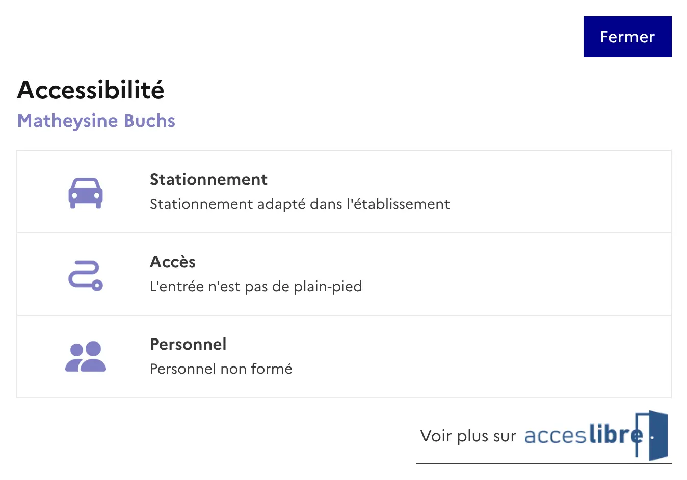 Il n'y a pas encore d'historique de modifications pour les données d'accessibilité de cet établissement.
